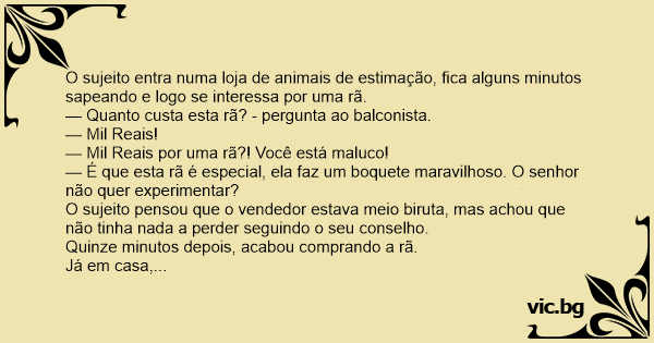 — Quanto custa esta rã? - pergunta ao balconista.