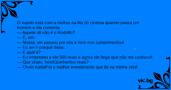O sujeito está com a mulher na fila do cinema quando passa um homem e ela comenta: