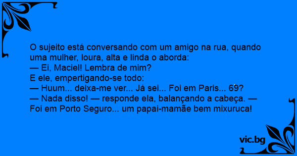 O sujeito está conversando com um amigo na rua, quando uma mulher, loura, alta e linda o aborda: