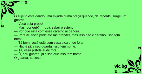 O sujeito está dando uma mijada numa praça quando, de repente, surge um guarda: