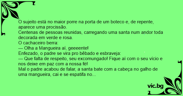 O sujeito está no maior porre na porta de um boteco e, de repente, aparece uma procissão.