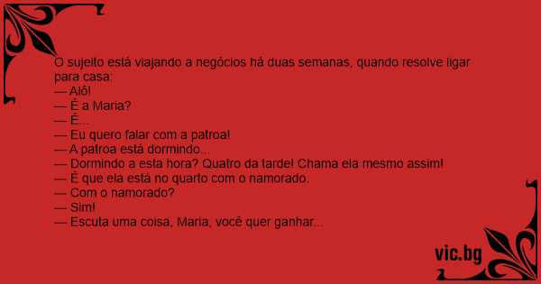 — Escuta uma coisa, Maria, você quer ganhar 10 mil?