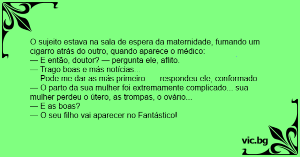 O sujeito estava na sala de espera da maternidade, fumando um cigarro atrás do outro, quando aparece o médico: