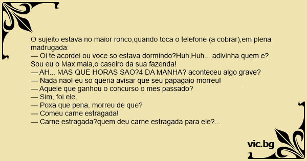 — Nada nao! eu so queria avisar que seu papagaio morreu!