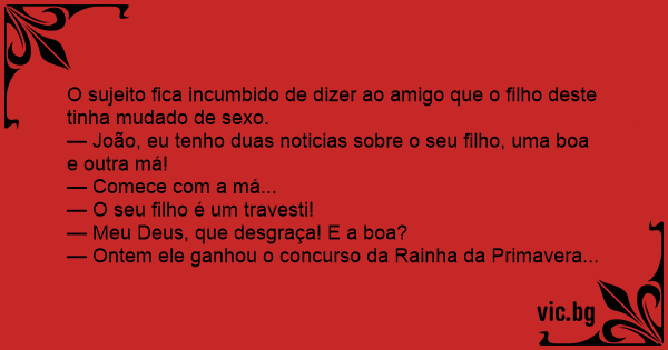 O sujeito fiса incumbido de dizer ao amigo que o filho deste tinha mudado de sеxо.