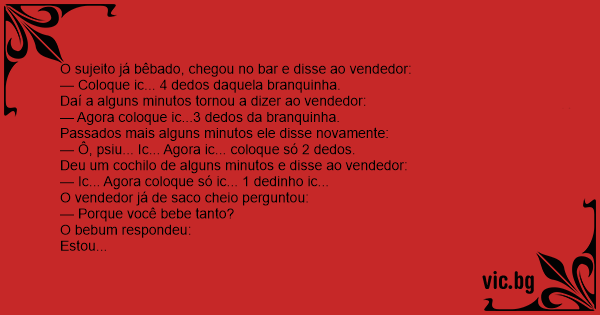 O sujeito já bêbado, chegou no bar e disse ao vendedor: