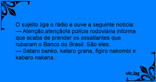 — Atenção,atenção!a polícia rodoviária informa que acaba de prender os assaltantes que rubaram o Banco do Brasil. São eles: