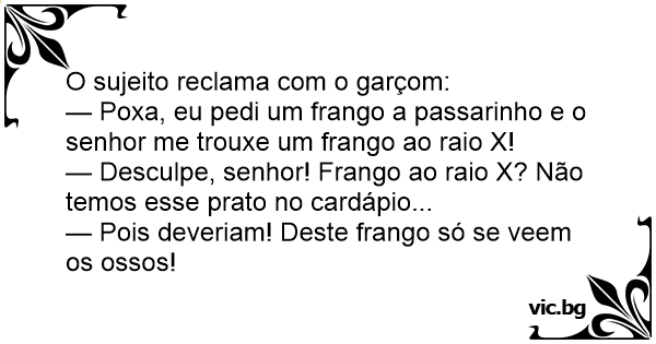 — Pois deveriam! Deste frango só se veem os ossos!