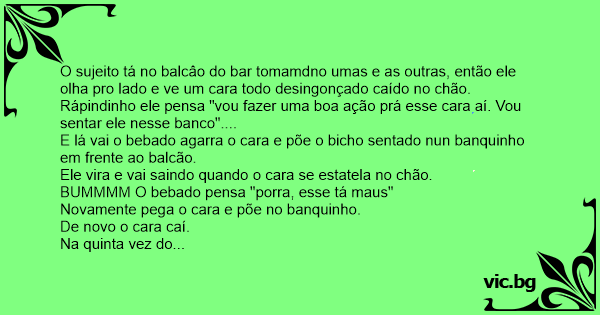 O sujeito tá no balcâo do bar tomamdno umas e as outras, então ele olha pro lado e ve um cara todo desingonçado caído no chão.