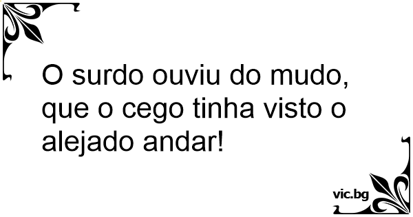 O surdo ouviu do mudo, que o cego tinha visto o alejado andar!
