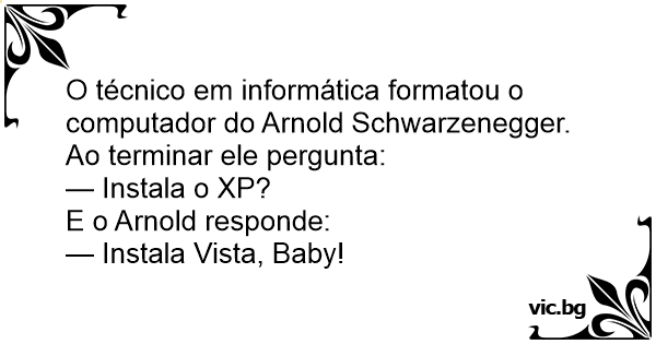O técnico em informática formatou o computador do Arnold Schwarzenegger. Ao terminar ele pergunta: