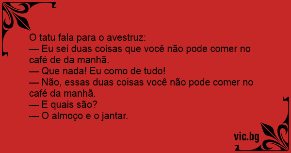— Eu sei duas coisas que você não pode comer no café de da manhã.