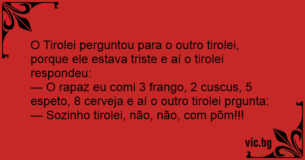 O Tirolei perguntou para o outro tirolei, porque ele estava triste e aí o tirolei respondeu: