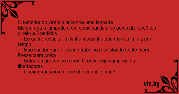 — Então eu quero que o meu Gremio seja campeão da libertadores.
