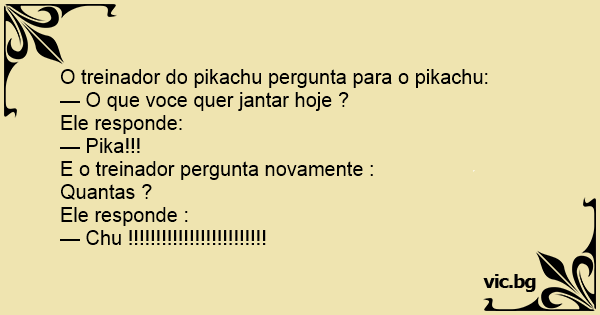 O treinador do pikachu pergunta para o pikachu: