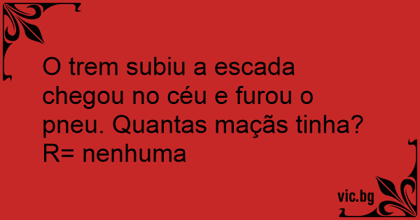 O trem subiu a escada chegou no céu e furou o pneu. Quantas maçãs tinha?