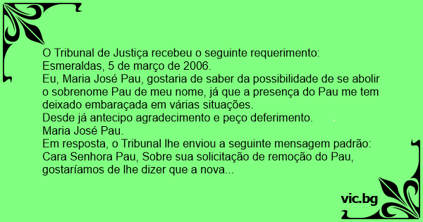 Em resposta, o Tribunal lhe enviou a seguinte mensagem padrão: