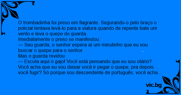 — Escuta aqui ó gajo! Você está pensando que eu sou otário? Você acha que eu vou deixar você ir pegar o quepe, pra depois você fugir? Só porque sou descendente de português, você acha que eu sou вurrо, hein?