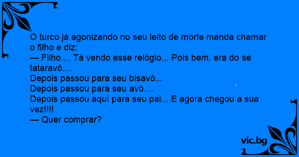 O turco já agonizando no seu leito de morte manda chamar o filho e diz: