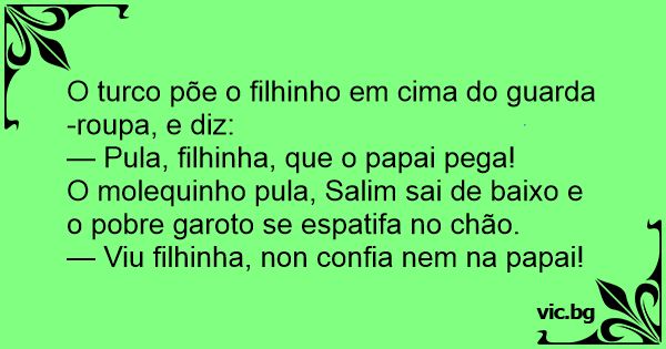 O turco põe o filhinho em cima do guarda-roupa, e diz: