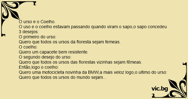 O uso e o coelho estavam passando quando viram o sapo,o sapo concedeu 3 desejos: