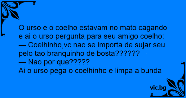 O urso e o coelho estavam no mato cagando e ai o urso pergunta para seu amigo coelho: