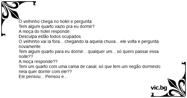 O velhinho chega no hotel e pergunta: