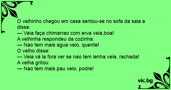 O velhinho chegou em casa sentou-se no sofa da sala e disse: