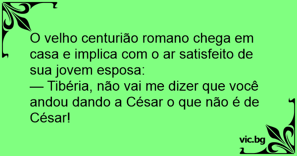 — Tibéria, não vai me dizer que você andou dando a César o que não é de César!