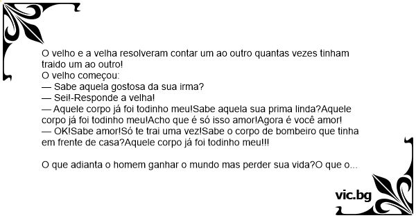 O velho e a velha resolveram contar um ao outro quantas vezes tinham traido um ao outro!