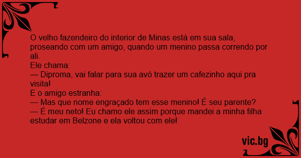 — Diproma, vai falar para sua avó trazer um cafezinho aqui pra visita!
