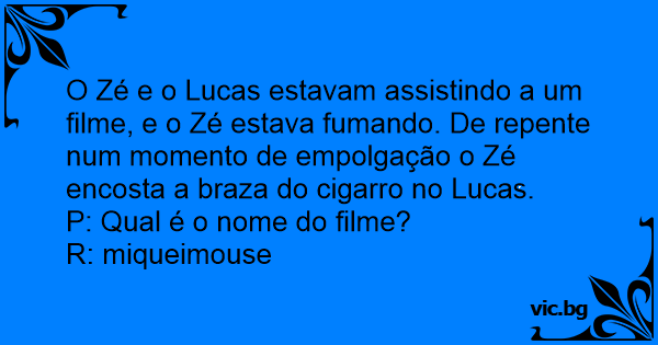 O Zé e o Lucas estavam assistindo a um filme, e o Zé estava fumando. De repente num momento de empolgação o Zé encosta a braza do cigarro no Lucas.