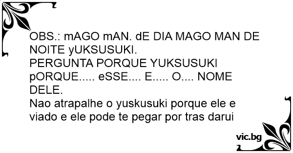 OBS.: mAGO mAN. dE DIA MAGO MAN DE NOITE yUKSUSUKI.