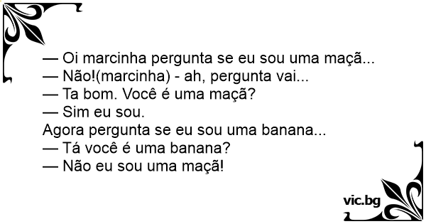 — Oi marcinha pergunta se eu sou uma maçã...