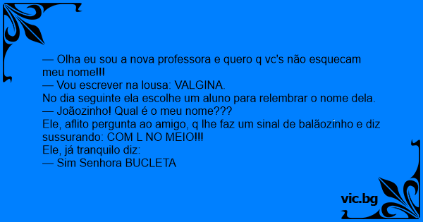 — Olha eu sou a nova professora e quero q vc's não esquecam meu nome!!!