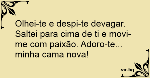 Olhei-te e despi-te devagar. Saltei para cima de ti e movi-me com paixão. Adoro-te... minha cama nova!