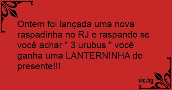 Ontem foi lançada uma nova raspadinha no RJ e raspando se você achar " 3 urubus " você ganha uma LANTERNINHA de presente!!!