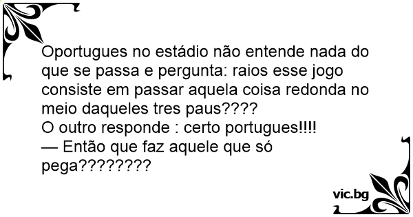 Oportugues no estádio não entende nada do que se passa e pergunta: raios esse jogo consiste em passar aquela coisa redonda no meio daqueles tres paus????