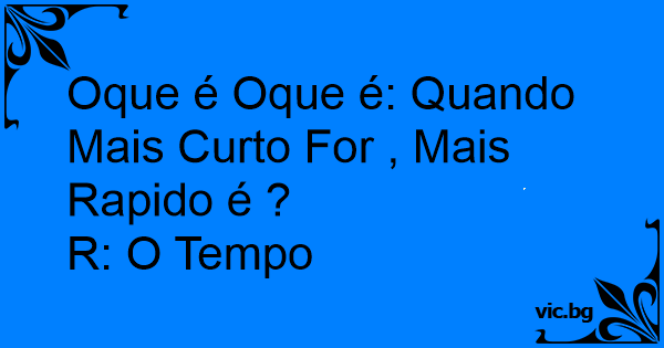 Oque é Oque é: Quando Mais Curto For , Mais Rapido é ?
