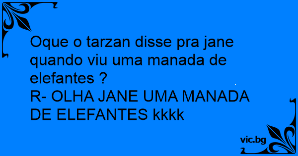 Oque o tarzan disse pra jane quando viu uma manada de elefantes ?<br />R- OLHA JANE UMA MANADA DE ELEFANTES kkkk