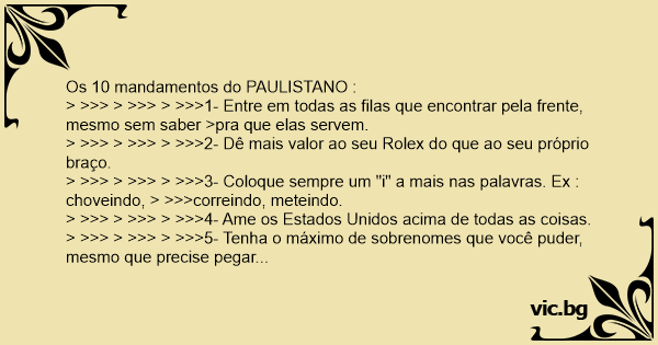 > >>> > >>> > >>> > >>>Os 10 mandamentos do BAIANO: