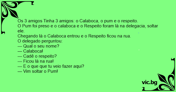 Os 3 amigos Tinha 3 amigos: o Calaboca, o pum e o respeito.