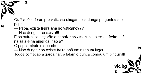 Os 7 anões forao pro vaticano chegando la dunga perguntou a o papa: