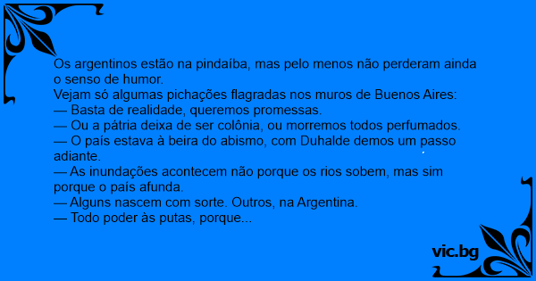 Os argentinos estão na pindaíba, mas pelo menos não perderam ainda o senso de humor.