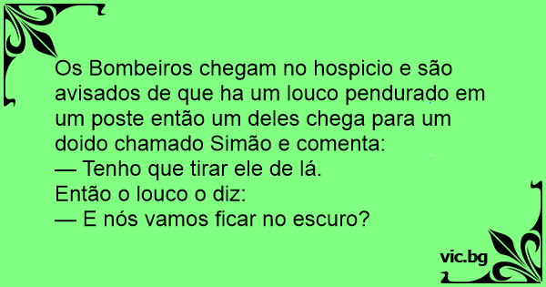 Os Bombeiros chegam no hospicio e são avisados de que ha um louco pendurado em um poste então um deles chega para um doido chamado Simão e comenta: