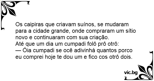— Óia cumpadi se ocê adivinhá quantos роrсо eu comprei hoje te dou um e fico cos otrô dois.