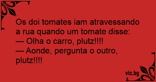Os doi tomates iam atravessando a rua quando um tomate disse: