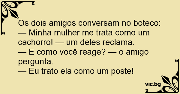 — Minha mulher me trata como um сасhоrrо! — um deles reclama.