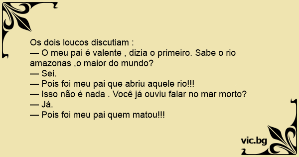 — O meu pai é valente , dizia o primeiro. Sabe o rio amazonas ,o maior do mundo?
