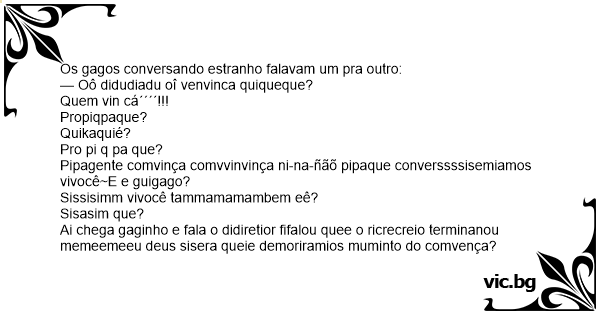 Ai chega gaginho e fala o didiretior fifalou quee o ricrecreio terminanou memeemeeu deus sisera queie demoriramios muminto do comvença?